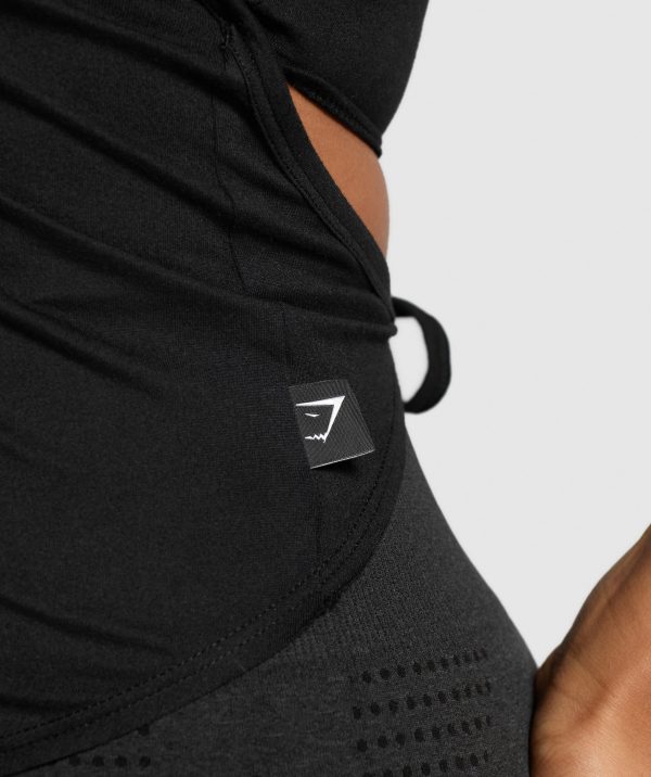 • Halter neck back tie to elevate your lifting look• 2-in-1 attached layer • Raw seam hem to finish off the style